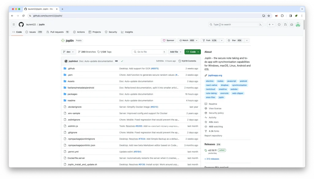 探してみたところ、JoplinというOSSが良さそうなので、それにしてみました。